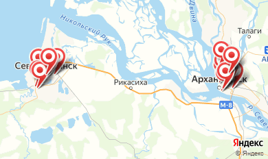 Организации с круглосуточным режимом работы: Частная скорая помощь №1 в Архангельске, Больница, Центральная медико-санитарная часть №58 Федерального медико-биологического агентства России.